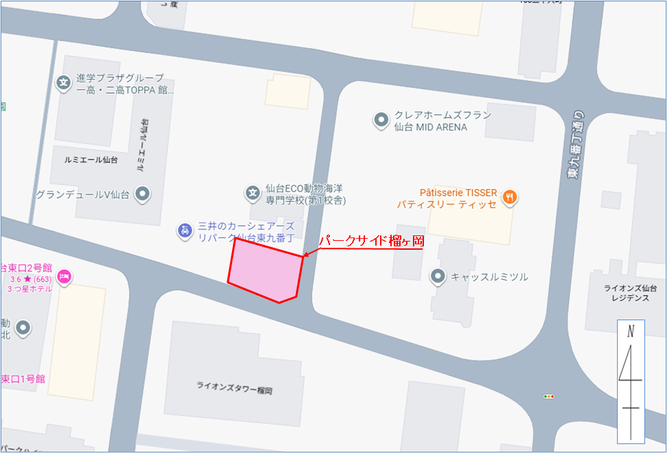 【パークサイド榴ヶ岡】 11月より1台ご利用可 住所:仙台市宮城野区榴ヶ岡101-9